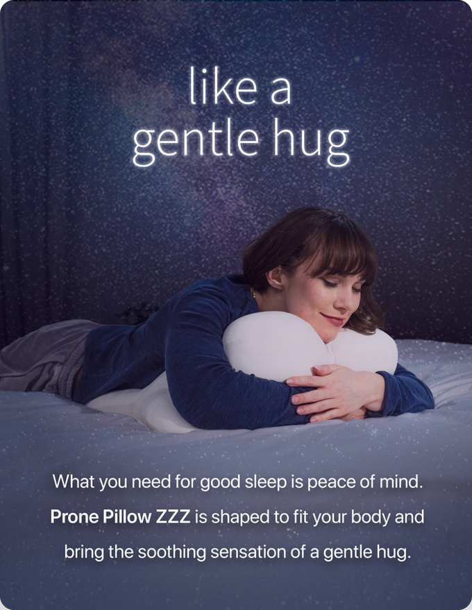 Prone Pillow ZZZ is the first-ever pillow ergonomically engineered specifically for stomach sleeping.