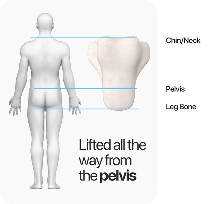 Prone Pillow ZZZ supports your body from the pelvis up — aligning your spine without pressure.