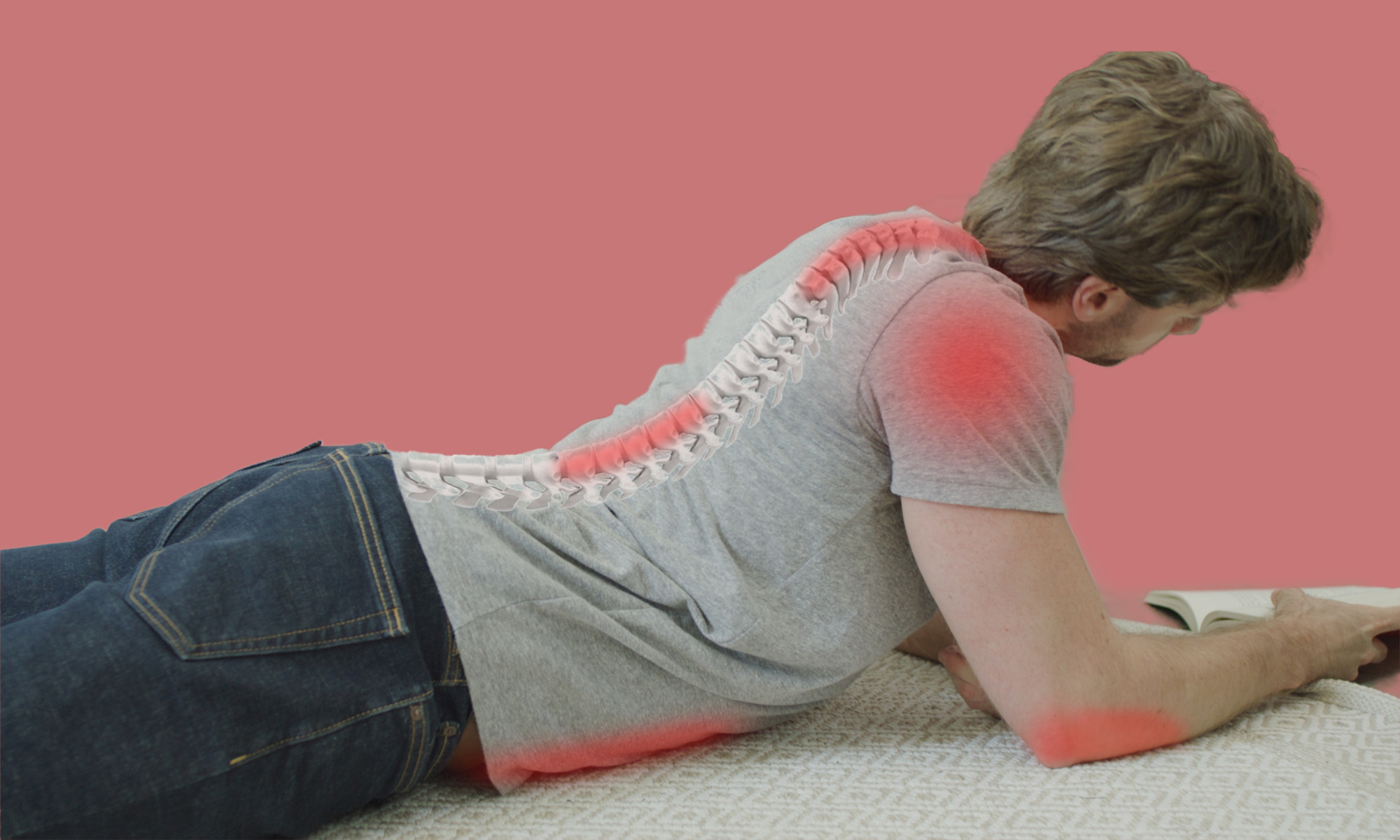 Unsupported lying puts pressure on focused areas - like your neck, back, and shoulders - causing pain. Prone Cushion™ removes all pressure points in your body.
